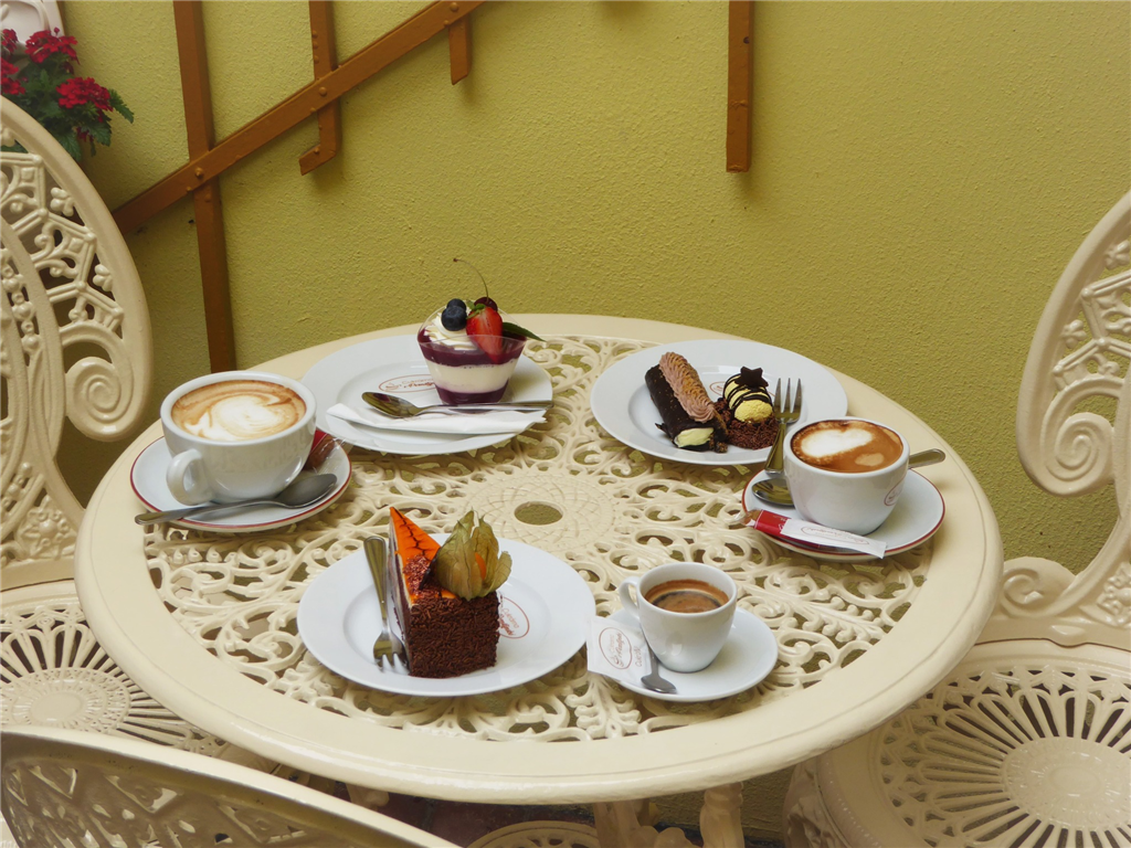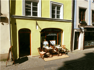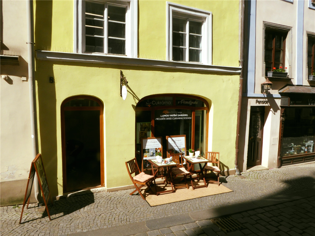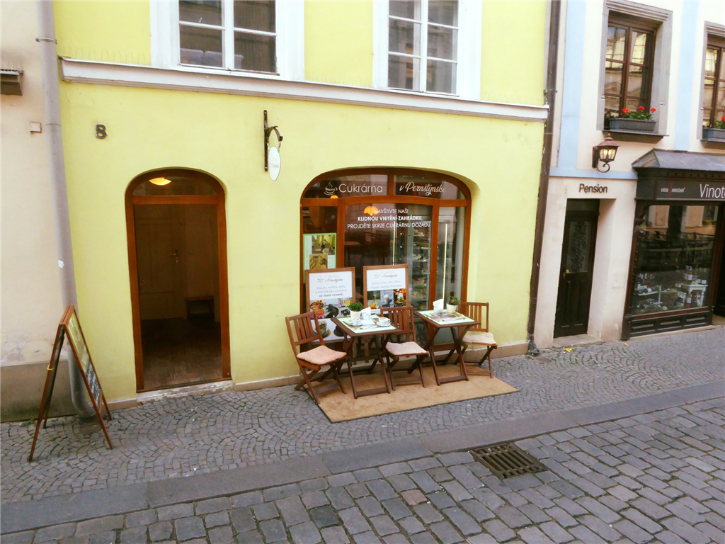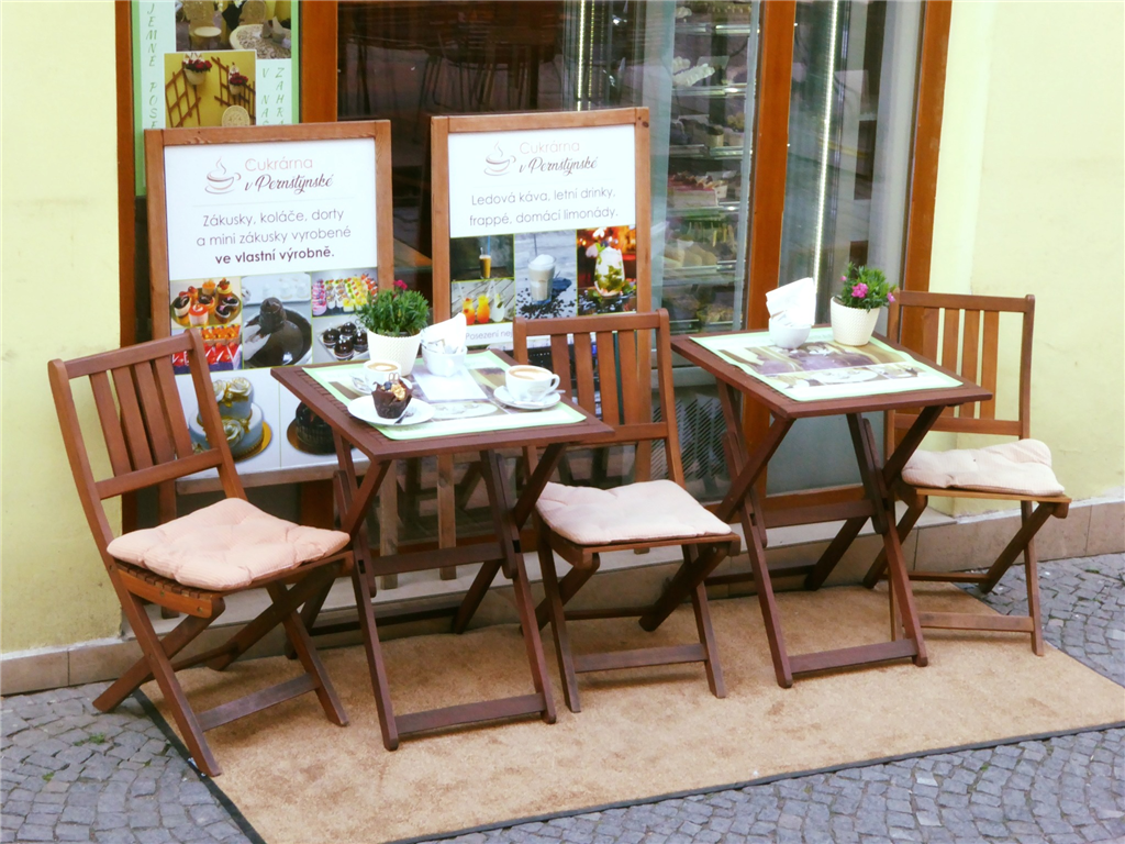 Druhou možností je posezení u stolku před cukrárnou přímo na ulici, která se nachází v pěší zóně.
