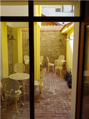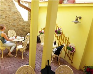 Na tuto zahrádku se dostanete průchodem skrze cukrárnu. Velká výhoda je ticho, klid a v horkých dnech
